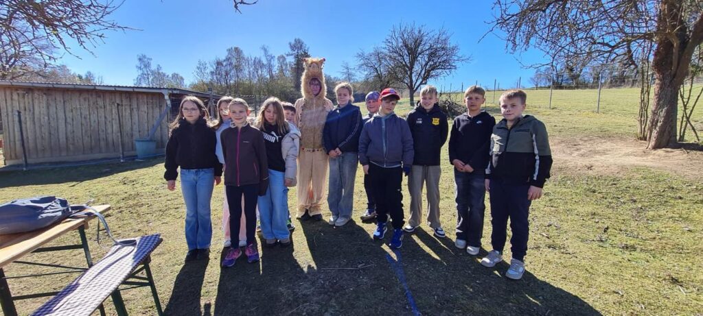 Erstes Highlight war der Besuch von Klasse 4 bei den Goldgrund Alpakas.